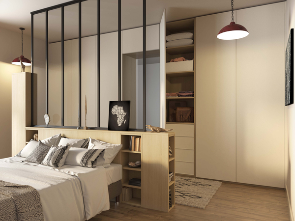 À vous de choisir les différents accessoires de rangement (tringles, tiroirs, penderies escamotables, étagères fixes ou mobiles, casiers à chaussures…).